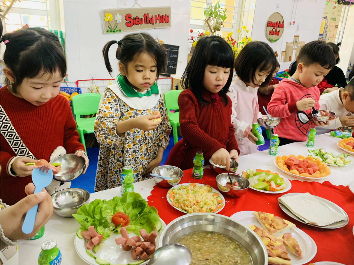 Bữa tiệc diễn ra trong không khí vui vẻ, với sự hào hứng, thích thú của các bé. Nhìn những khuôn mặt háo hức, nụ cười hạnh phúc của các bé, các cán bộ, giáo viên, nhân viên và các bậc phụ huynh hiểu được rằng mong muốn xây dựng “trường học hạnh phúc” chỉ là những điều đơn giản như vậy thôi. Đó là nơi các con cảm thấy vui vẻ, an toàn. Bố mẹ cùng ngắm nhìn hình ảnh tại các lớp được cô giáo ghi lại trong bữa tiệc buffet nhé!