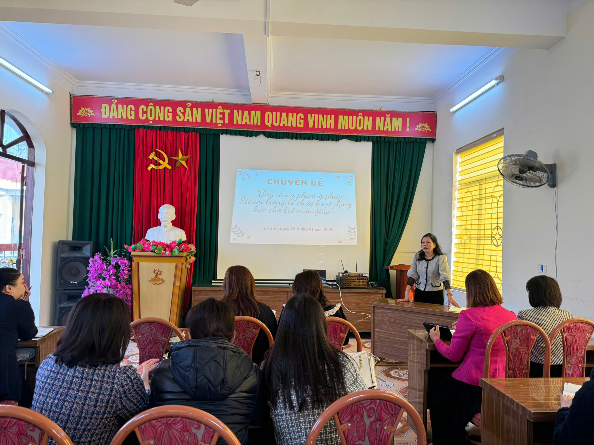 Về dự chuyên đề, các đồng chí đại biểu dự giờ và góp ý cho 2 tiết học ứng dụng phương pháp Steam ở 2 lớp 4 và 5 tuổi: