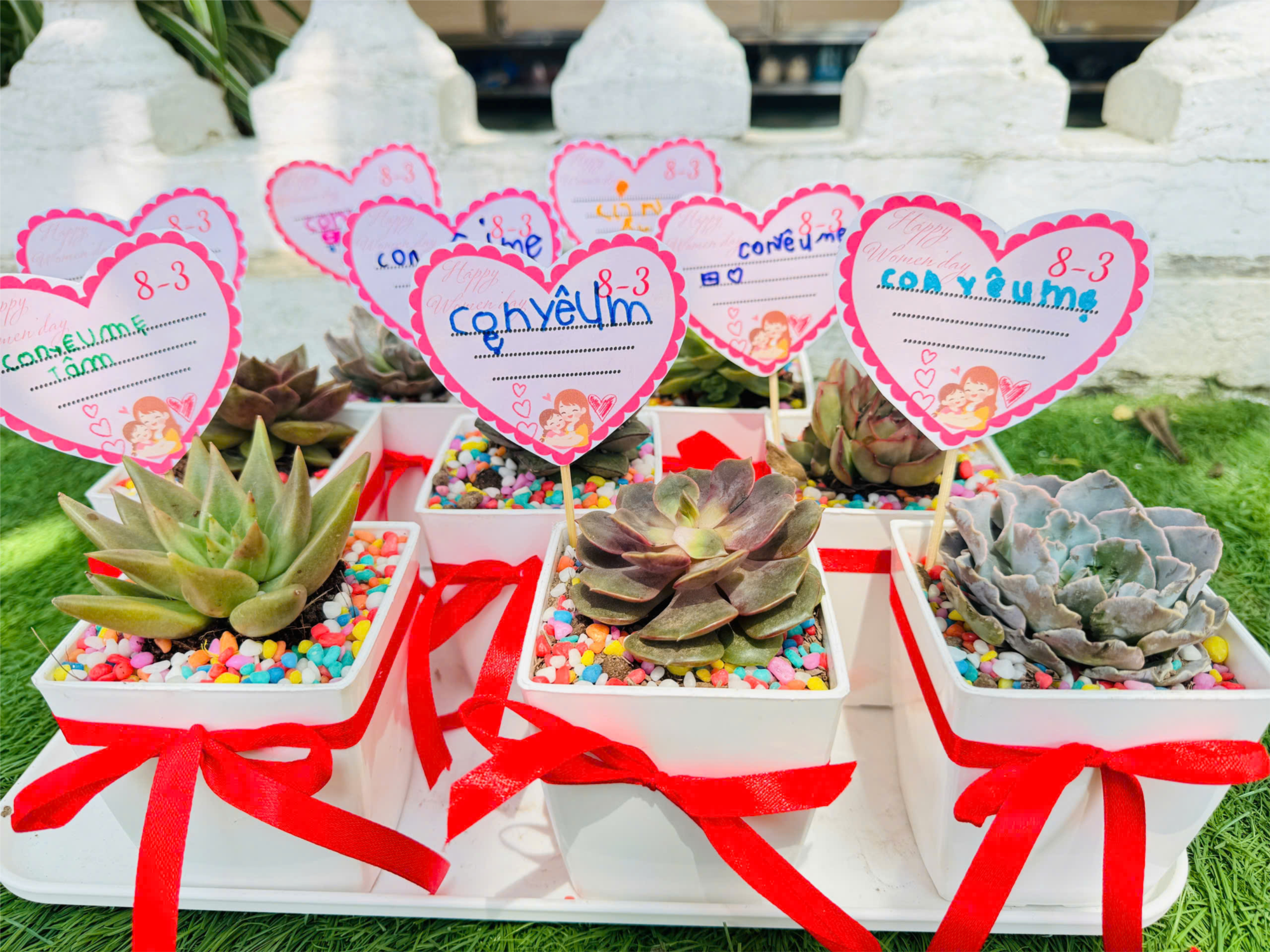 Hòa chung không khí ấm áp và ý nghĩa của ngày Quốc tế Phụ nữ 8/3, các bé lớp 5 tuổi A đã tham gia hoạt động trải nghiệm vô cùng đáng yêu: tự tay trồng những chậu sen đá xinh xắn để dành tặng bà và mẹ – những người phụ nữ thân yêu nhất của mình.