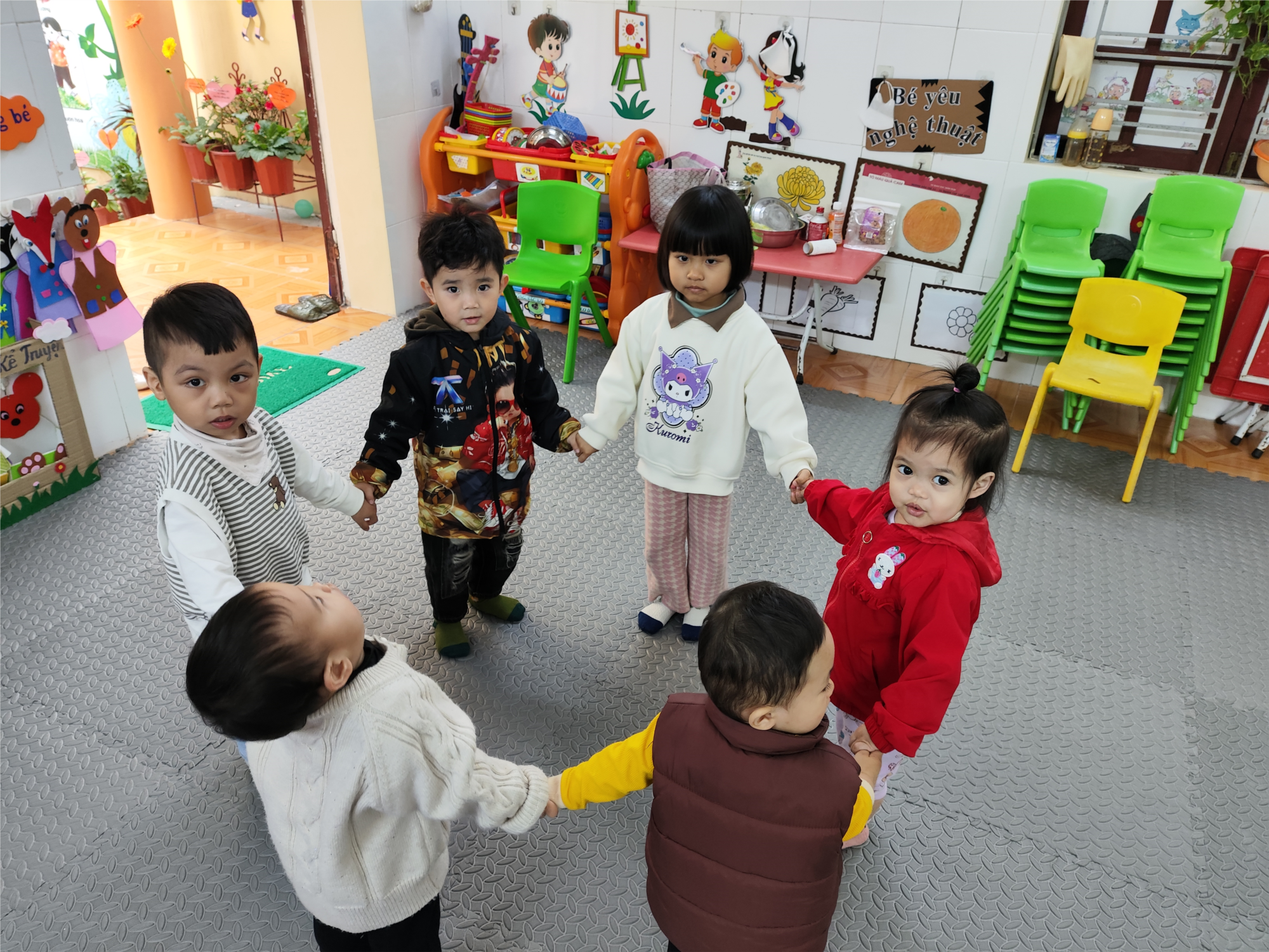 Sáng nay, các bé lớp Nhà trẻ C2 đã có một buổi hoạt động thể chất đầy hào hứng với bài tập "Trườn qua vật cản". Dưới sự hướng dẫn tận tình của cô giáo, các bé được rèn luyện kỹ năng bò trườn, giúp phát triển cơ tay, cơ chân và khả năng phối hợp vận động.