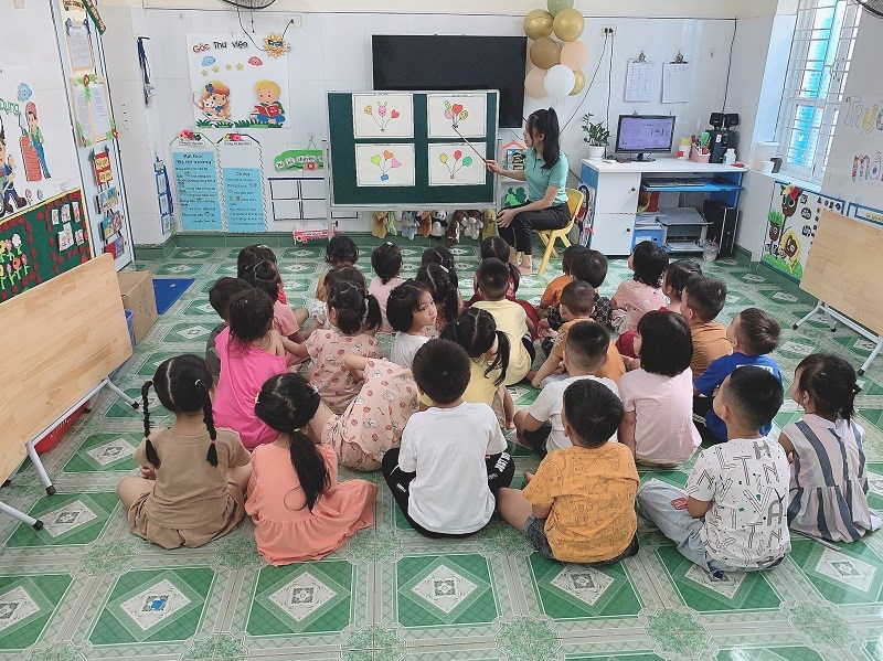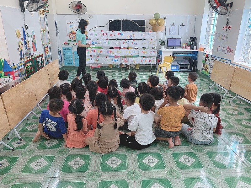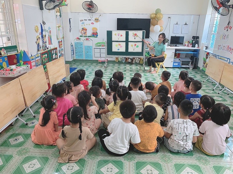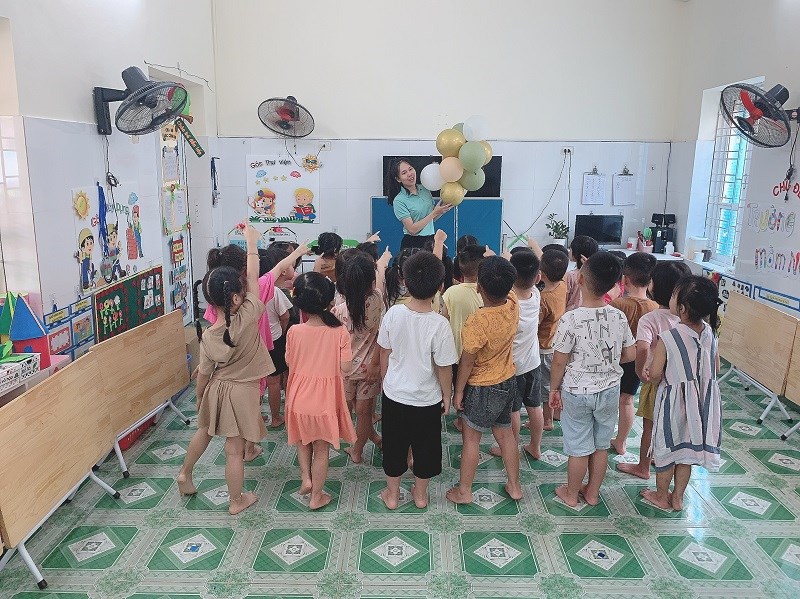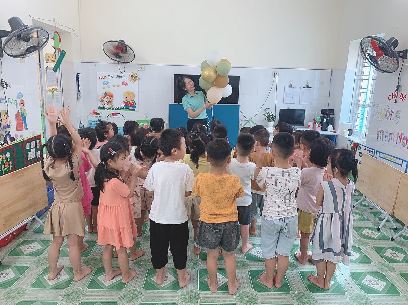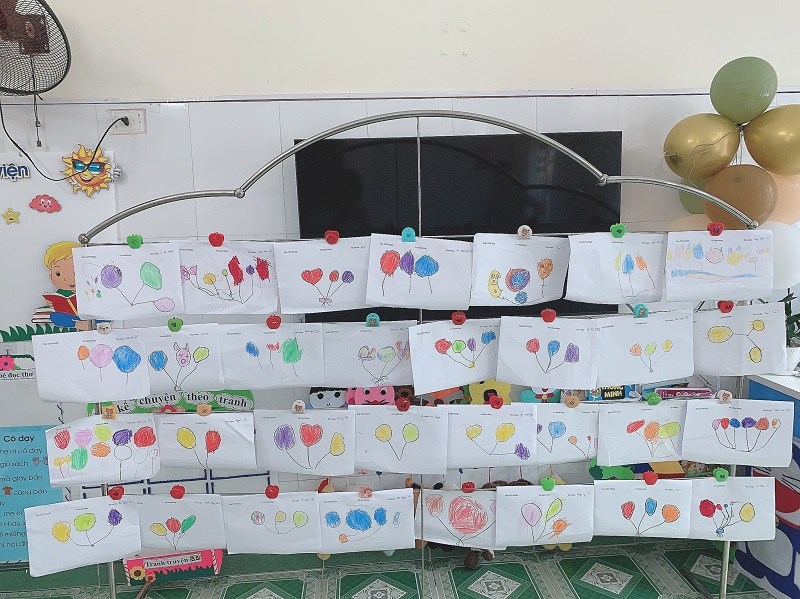 Dưới đây là một số hình ảnh cô trò lớp 4 tuổi A tham gia hoạt động vẽ và tô màu chùm bóng: