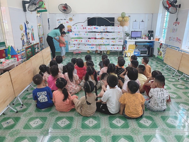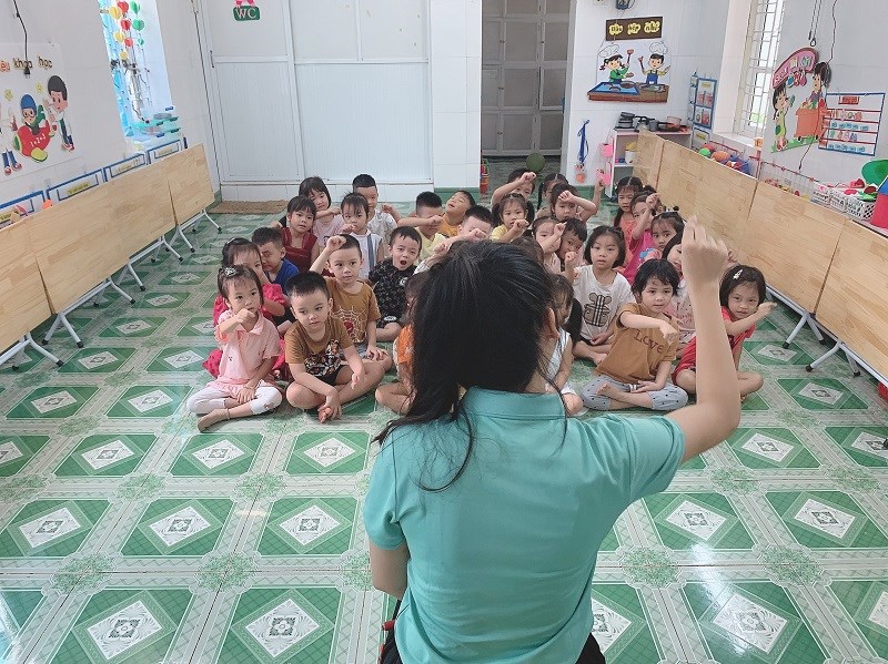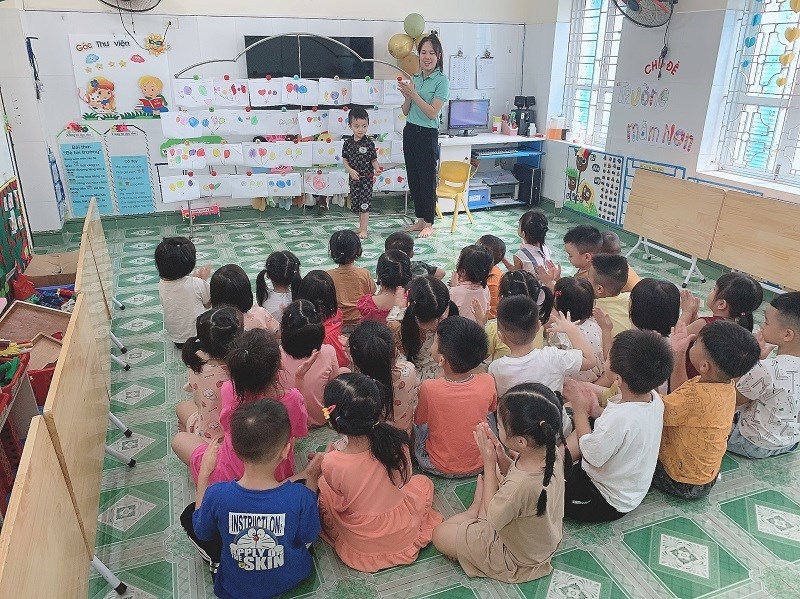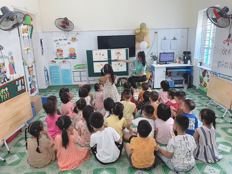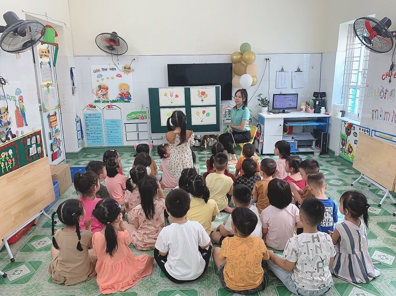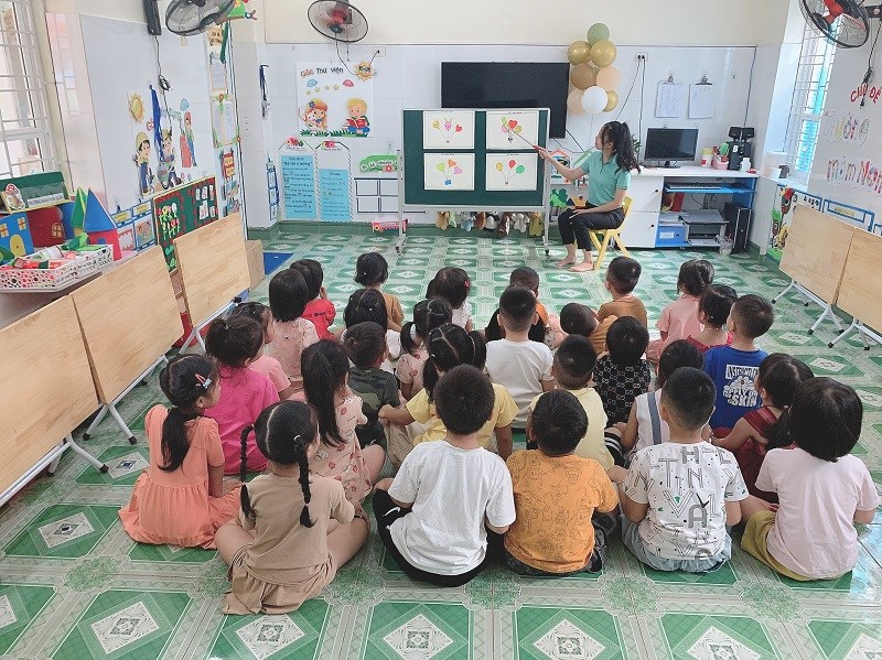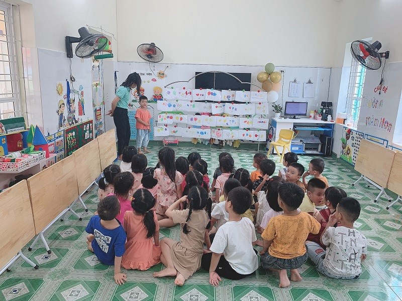 Dưới đây là một số hình ảnh cô trò lớp 4 tuổi A tham gia hoạt động vẽ và tô màu chùm bóng: