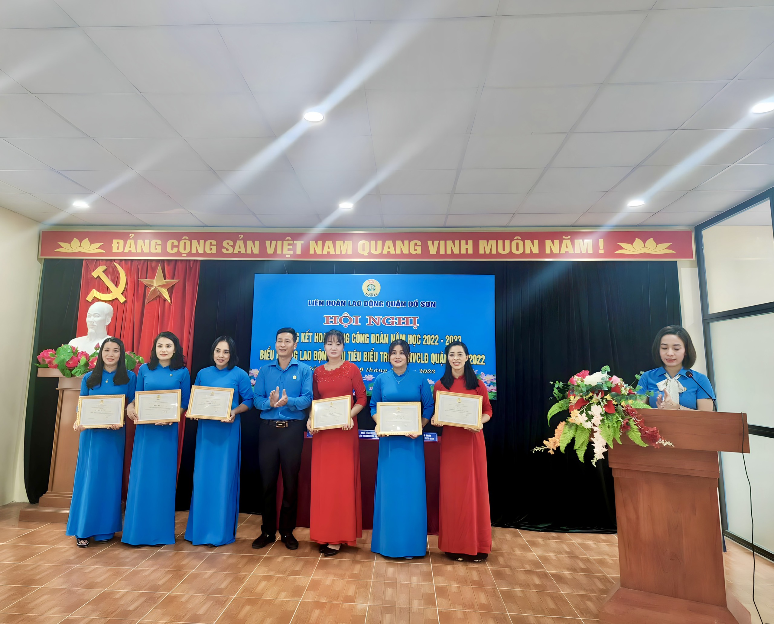 Sáng ngày 19/10/2023, cán bộ, giáo viên trường Mầm non Quận tham gia “Hội nghị Tổng kết hoạt động công đoàn năm học 2022-2023, biểu dương lao động giỏi tiêu biểu trong CNVCLĐ quận năm 2022”.