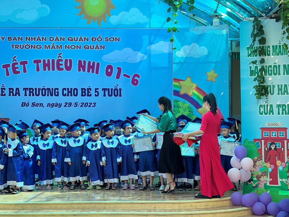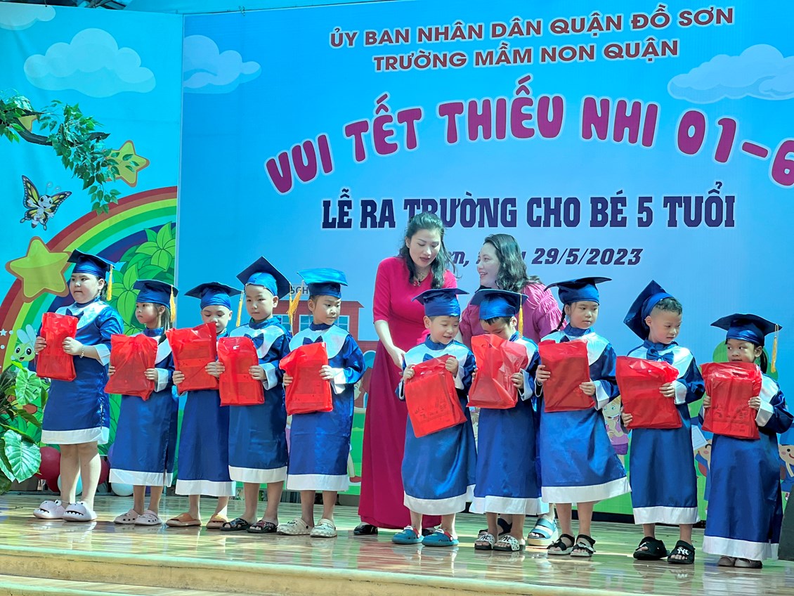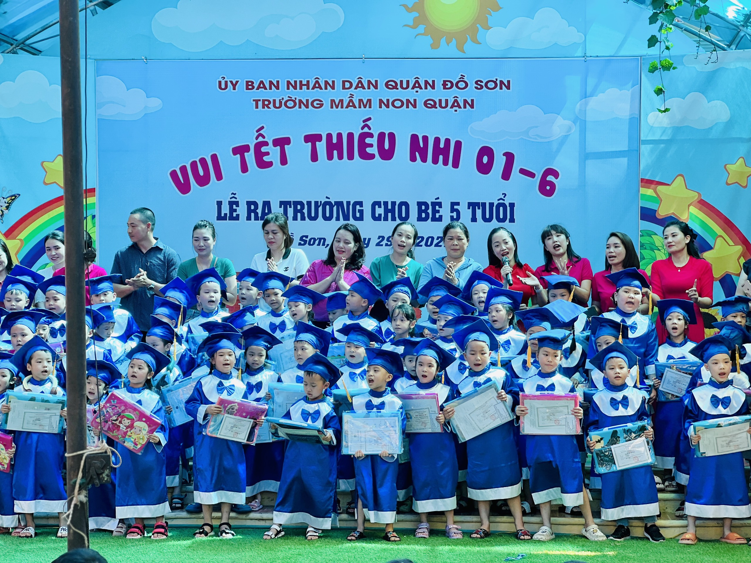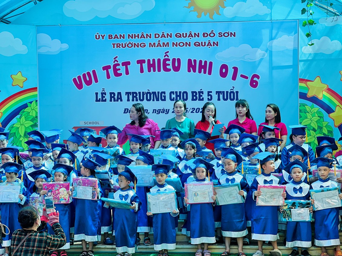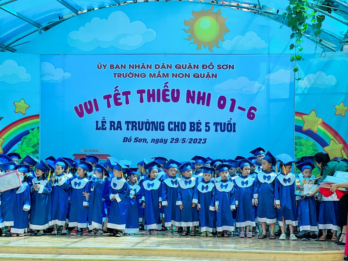 Hôm nay, ngày 29/5/2023, trường Mầm non Quận đã long trọng tổ chức chương trình "Vui tết thiếu nhi 1/6; Lễ ra trường cho các bé 5 tuổi". Tham dự buổi lễ có các bậc phụ huynh cùng giáo viên và hơn 300 cháu học sinh của trường Mầm non Quận.