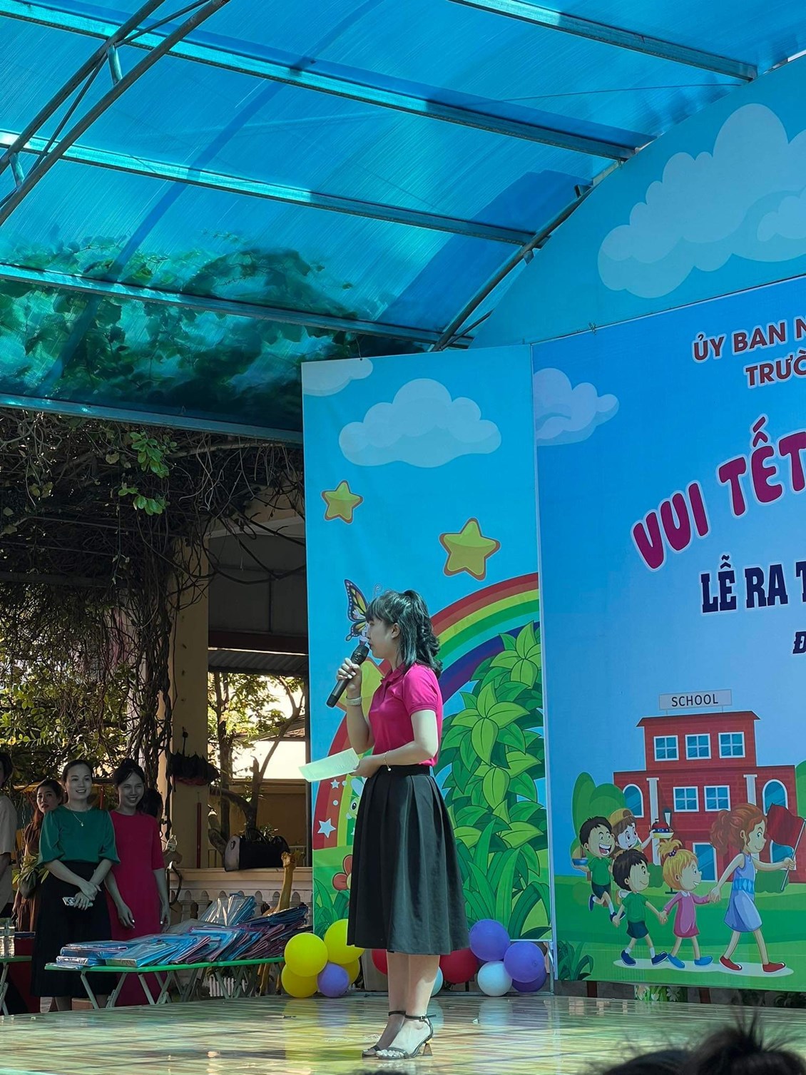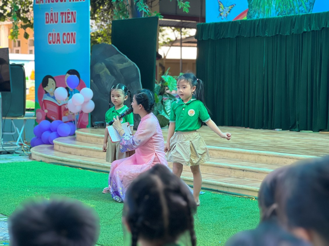 Thay mặt nhà trường, cô Hiệu trưởng Lê Thị Hà có đôi lời phát biểu, cảm ơn các bậc cha mẹ học sinh đã nhiệt tình ủng hộ và thường xuyên phối kết hợp cùng chăm sóc, nuôi dạy giúp các con tiến bộ. Cũng trong lời phát biểu của mình, cô còn ân cần trò chuyện, dặn dò các con luôn cố gắng chăm ngoan, học giỏi, vâng lời cha mẹ, thầy cô giáo để xứng đáng là Cháu ngoan Bác Hồ.
