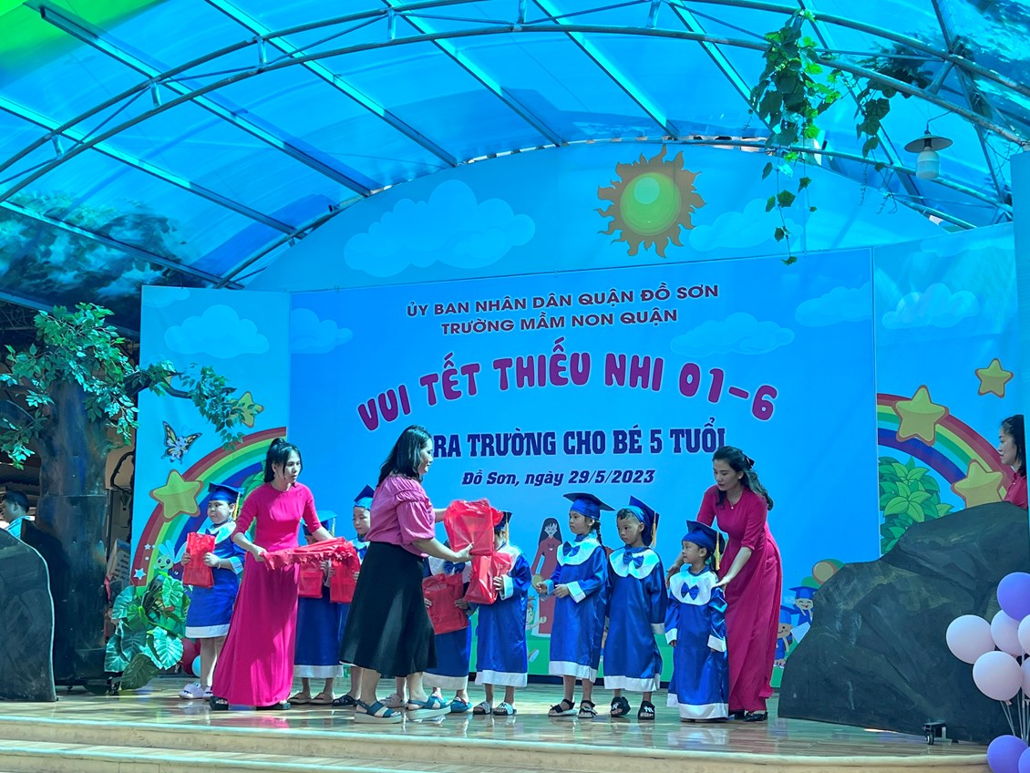 Mở đầu chương trình là tiết mục biểu diễn của Đoàn múa rối nghệ thuật Hải Phòng. Chương trình đã đã góp phần tạo sự hào hứng cho học sinh trong không khí tưng bừng, rộn ràng của buổi lễ ra trường cho các bé 5 tuổi trường Mầm non Quận