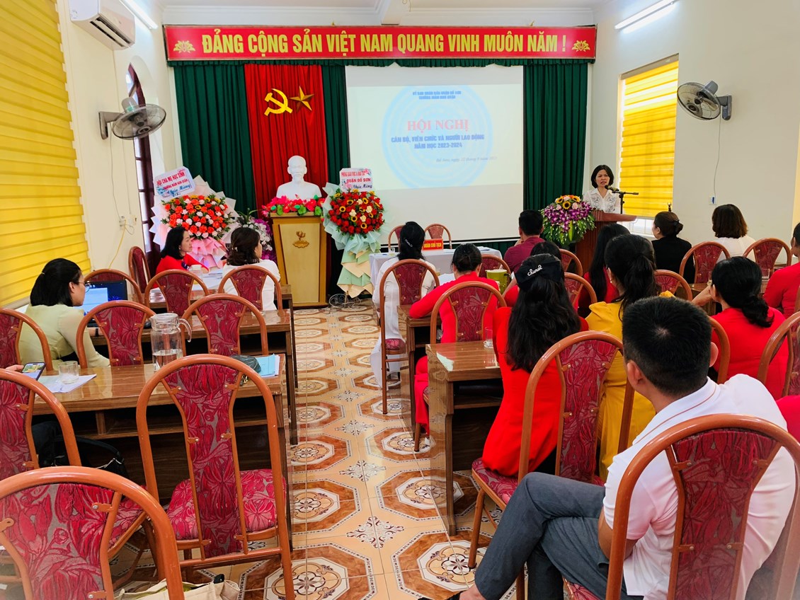 Hội nghị diễn ra với tinh thần phấn khởi, đoàn kết, trách nhiệm. Phát biểu chỉ đạo tại Hội nghị, các đồng chí lãnh đạo Liên đoàn lao động quận, lãnh đạo Phòng Giáo dục đánh giá cao công tác chuẩn bị, cầu toàn của tập thể hội đồng sư phạm nhà trường; ghi nhận thành tích và sự cố gắng của đội ngũ. Động viên đội ngũ tiếp tục thi đua dạy tốt, học tốt, đoàn kết để hoàn thành xuất sắc các chỉ tiêu, nhiệm vụ năm học 2023-2024 đã đề ra./.