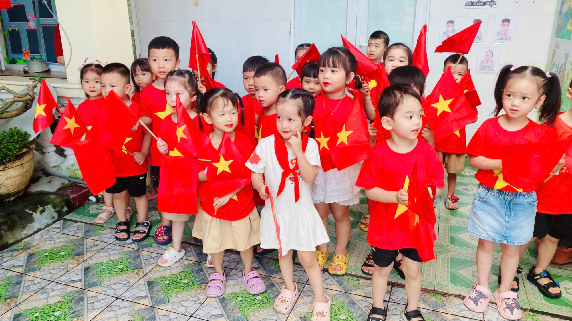 Trong những ngày này, khuôn viên nhà trường rực rỡ sắc đỏ của cờ Tổ quốc. Từ các lớp học, sân trường đến các góc hoạt động, đâu đâu cũng tràn ngập hình ảnh cờ đỏ sao vàng. Đây là dịp để các cô giáo lồng ghép những bài học đơn giản nhưng sâu sắc về tình yêu quê hương, đất nước, về ý nghĩa của ngày 2/9 - ngày Bác Hồ đọc bản Tuyên ngôn Độc lập, khai sinh ra nước Việt Nam Dân chủ Cộng hoà. Hàng trăm thiên thần nhỏ của trường, trong những chiếc áo cờ đỏ sao vàng, đã cùng nhau cất cao tiếng hát. Những bài ca ngợi quê hương đất nước được vang lên trong trẻo, hồn nhiên. Từng động tác múa, từng câu hát của các bé tuy còn ngây thơ nhưng đã thể hiện niềm tự hào dân tộc mãnh liệt.