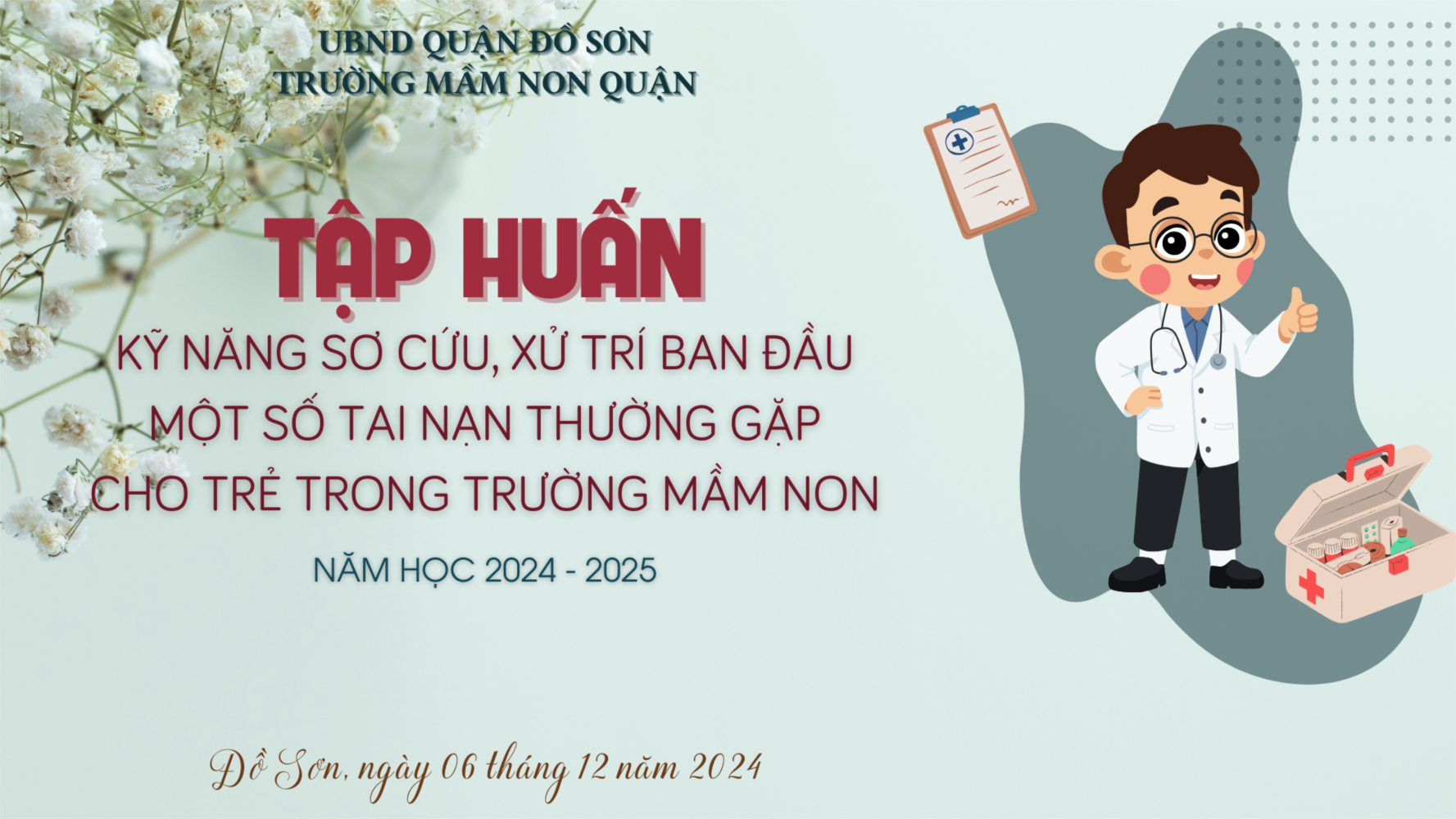 Để trẻ được an toàn chúng ta cần chú ý tạo môi trường an toàn cho trẻ, phòng tránh những tai nạn thương tích thường gặp, phòng tránh tai nạn do ngộ độc, phòng tránh đuối nước, cháy bỏng, điện giật, tai nạn giao thông, động vật cắn... Để thực hiện tốt việc đảm bảo an toàn, phòng tránh tai nạn thương tích cho trẻ chiều ngày 06/12/2024, Trường Mầm non Quận phối hợp với Trung tâm y tế phường Hải Sơn tổ chức tập huấn kỹ năng xử trí ban đầu một số tai nạn thường gặp ở trẻ cho cán bộ, giáo viên, nhân viên trong nhà trường . Nhằm nâng cao kỹ năng cho CBGVNV chủ động phòng tránh tai nạn thương tích cho trẻ trong học tập, sinh hoạt hàng ngày.