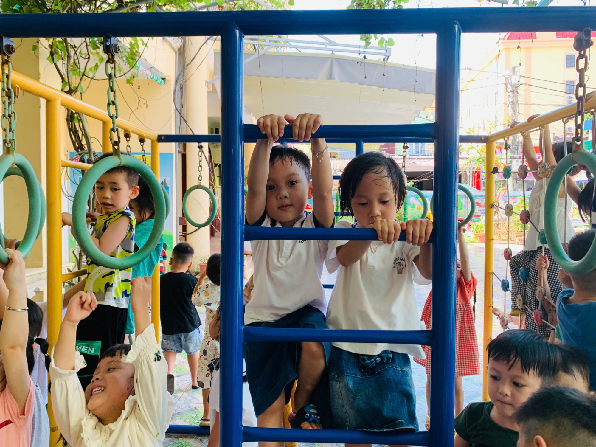 Phát triển vận động có tầm quan trọng vô cùng, giúp trẻ hoạt bát, nhanh nhẹn trong từng bước đi, từng động tác bò, trèo, trườn, chạy…bên cạnh đó còn rèn luyện sự dẻo dai, phát triển các cơ bắp, hệ thần kinh, nhanh tay, nhanh mắt. Vui chơi là hoạt động chủ đạo của trẻ ở trường mầm non, ngoài giờ học trên lớp, cô giáo còn thiết kế những trò chơi vô cùng bổ ích thu hút trẻ giúp trẻ phát triển toàn diện cả về thể chất lẫn tinh thần.