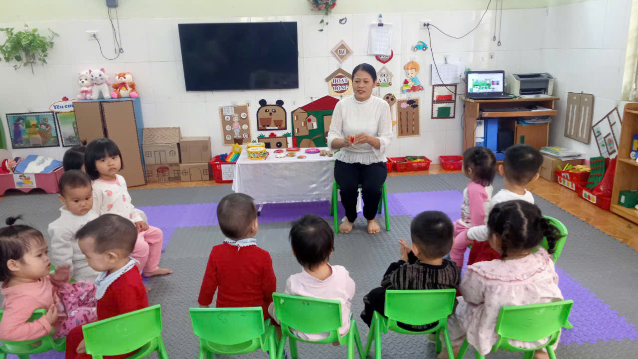 Hoạt động không chỉ giúp các bé rèn luyện khả năng cảm thụ âm nhạc, mà còn phát triển kỹ năng vận động, sự tập trung và phối hợp nhịp nhàng giữa tai – mắt – tay. Cô giáo không ngừng động viên và khen ngợi mỗi khi các bé vỗ đúng nhịp, tạo nên không khí học tập vừa vui tươi vừa gần gũi.
